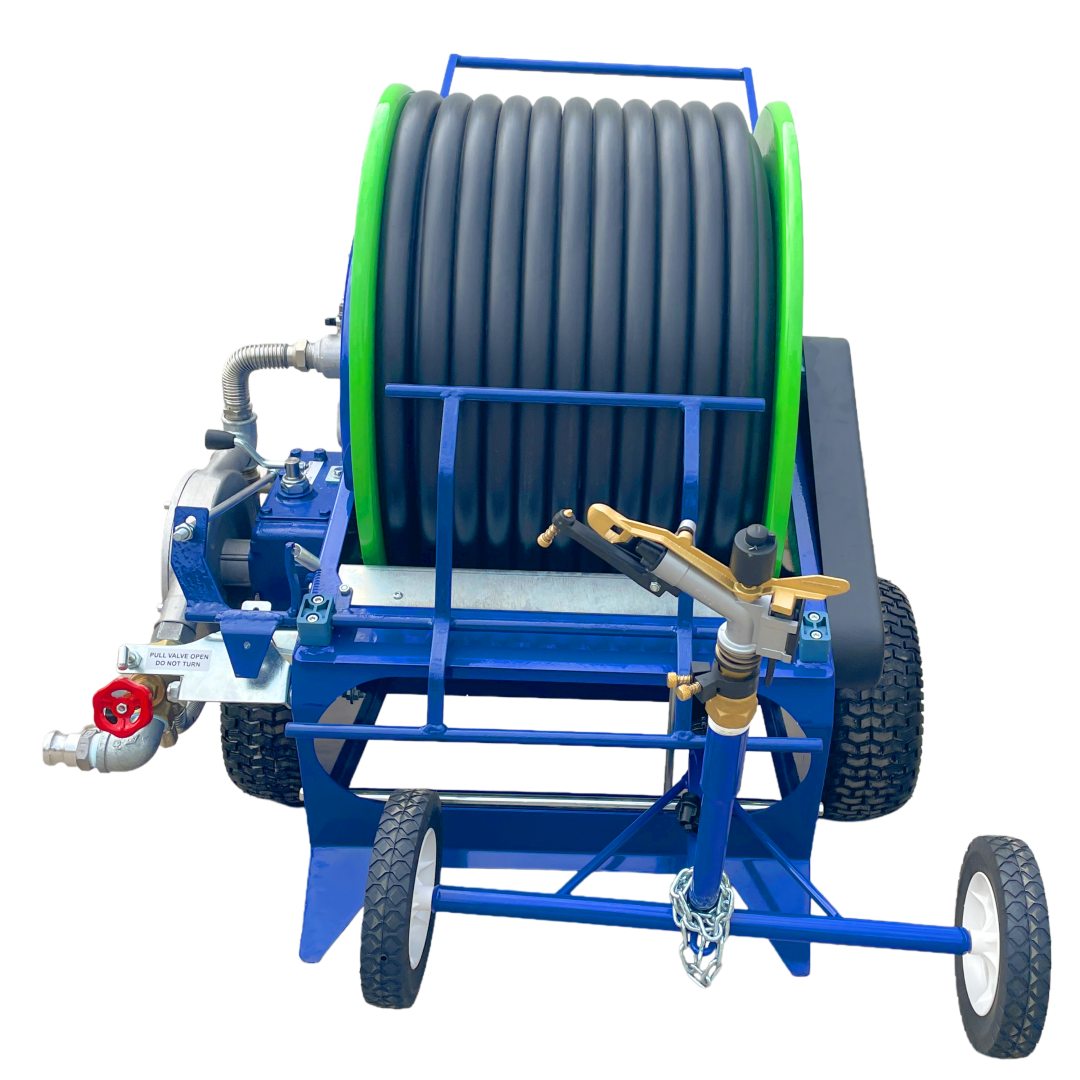 The MR32 combines heavy duty, quality steel frame and reel construction with the simple, yet maneuverable two wheel design like it's smaller counterpart-the MR25. Build to withstand heavy use, the MR32 operates from a 1 inch line (or 3/4" hose if flow and pressure is adequate) and allows irrigated areas up to 300 feet long and 120 feet wide for sports fields, horse arenas, hobby farms, or any area up to 4 acres. The MR32 is also available with a hitch kit making it compatible for towing with an ATV or small garden tractor! An excellent reel irrigator for many different applications! View the full performance chart for coverages and application rates.